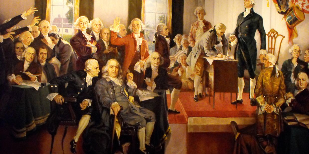 This painting depicts the Declaration of Independence. Charles Carroll of Carrollton was a Catholic and a wealthy Maryland planter and early advocate of the Independence from Great Britain and one of the signers of the American Declaration of Independence. He is one of the Founding Fathers of the United States of America.